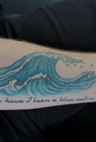 纹身海浪 男生手臂上花体英文和浪花纹身图片