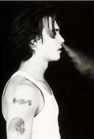 美国纹身明星 Johnny Depp手臂上印第安人和英文纹身图片