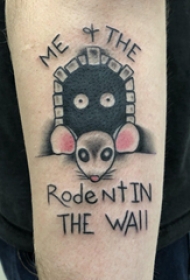 手臂纹身素材 男生手臂上英文和老鼠纹身图片
