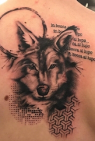 滴血狼头纹身 男生后背上黑灰色的滴血狼头纹身图片