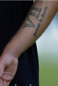 贝克汉姆纹身图片 明星手臂上黑色的英文字母纹身图片