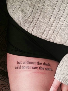 大腿处年轻派个性英文纹身图案
