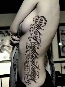 侧腰部上的时尚大方英文纹身图案