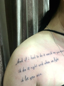 处在女生的后背性感英文纹身图案