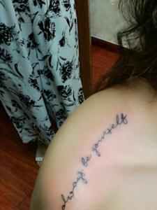 简单大方的后背英文纹身刺青