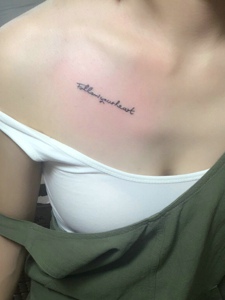 锁骨配简单英文纹身图案很配哦