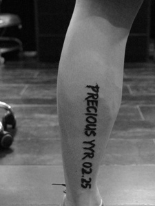 小腿外侧简单的英文单词纹身刺青