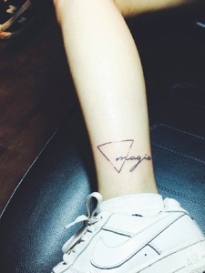 裸脚几何与英文一起的纹身刺青
