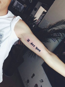 手臂外侧简单的时尚英文纹身刺青