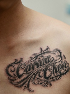 永远都不会被淘汰的胸前英文纹身刺青