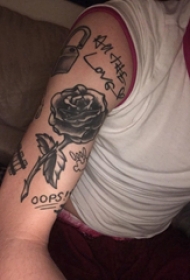 玫瑰纹身图 女生手臂上玫瑰和英文纹身图片