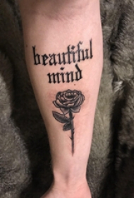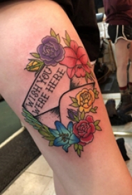 花朵和英文纹身图案 女生大腿上花朵和英文纹身图片
