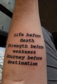 手臂内侧英文纹身 男生手臂上黑色的英文纹身图片