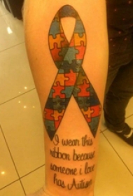 欧美拼图纹身 男生手臂上英文和丝带纹身图片