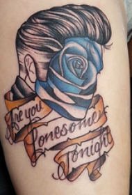 人物肖像纹身 女生大腿上英文和人物肖像纹身图片