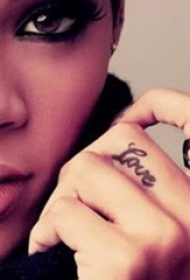蕾哈娜手上纹身 蕾哈娜手上黑色的英文纹身图片