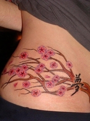 女生腰部漂亮的梅花和字纹身图片