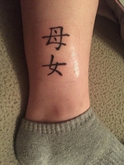 小腿上的中文字"母女"纹身图片