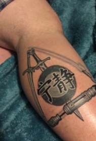 男生手臂上黑色线条创意经典中文字符纹身图片