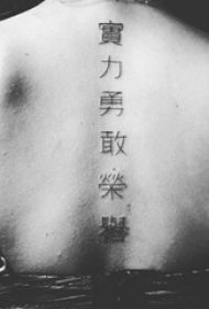 背部脊椎骨上的埃诗里中文字纹身图案