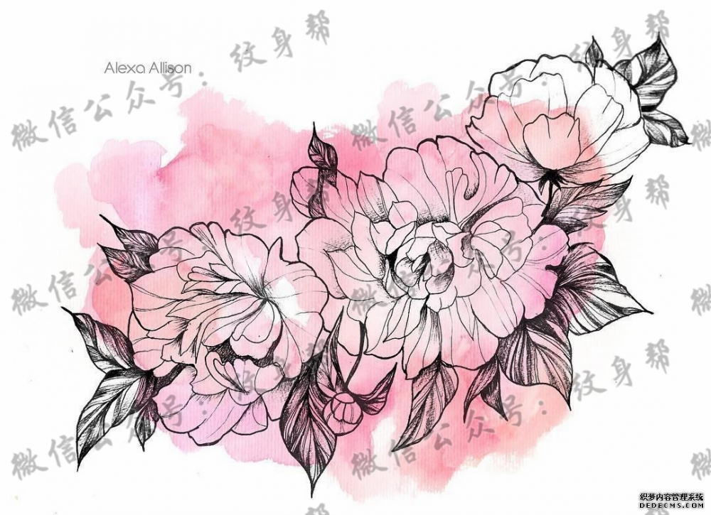 一组15张彩色花卉花朵纹身手稿图案素材(14)